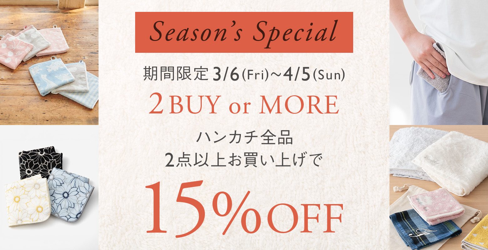 [期間限定まとめ割]ハンカチ2点以上購入で15%OFF