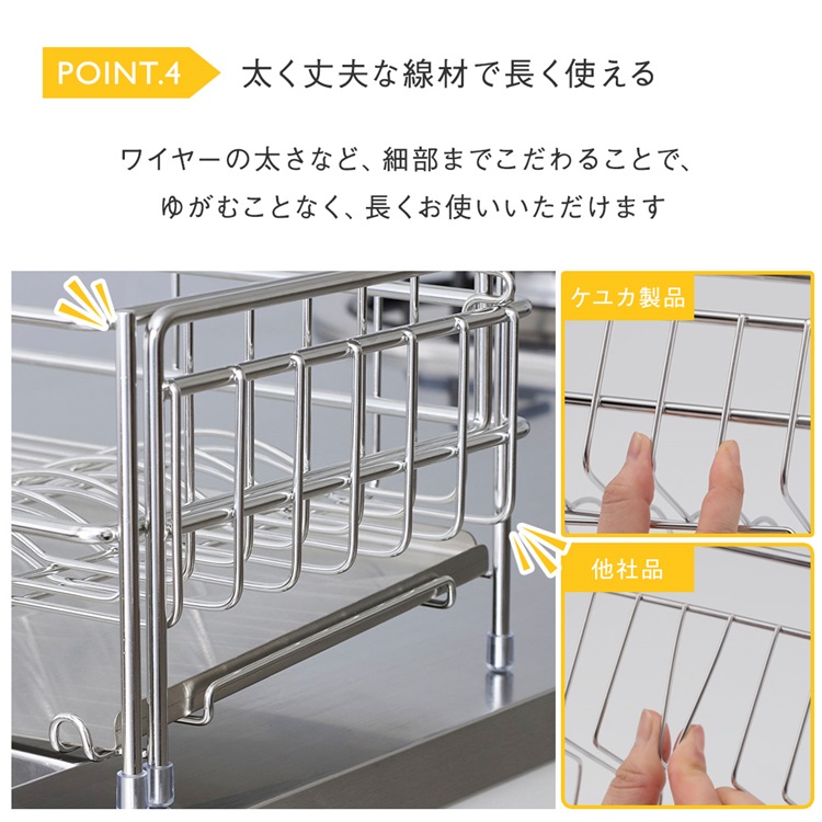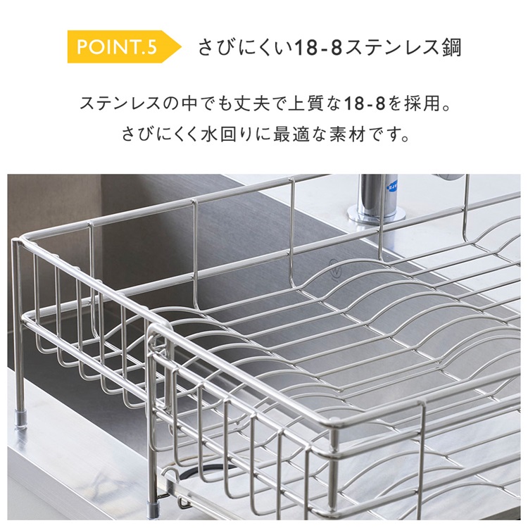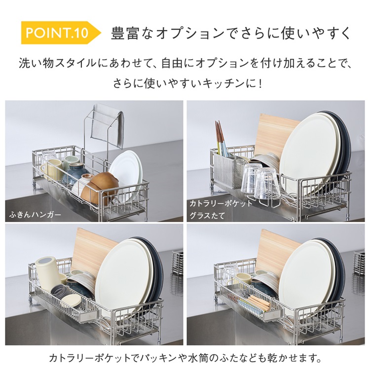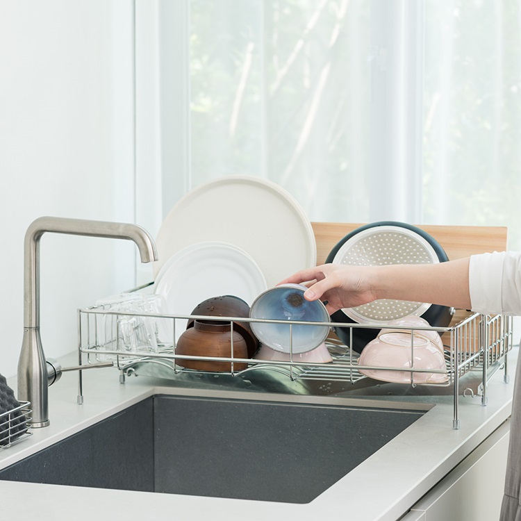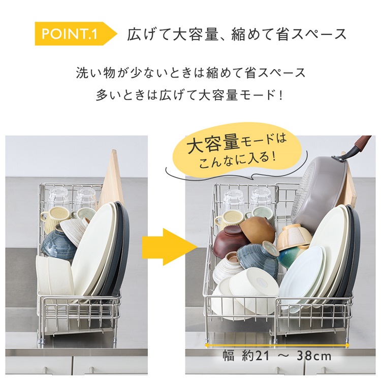 洗い物の量に合わせてサイズ調節ができる水切りカゴ