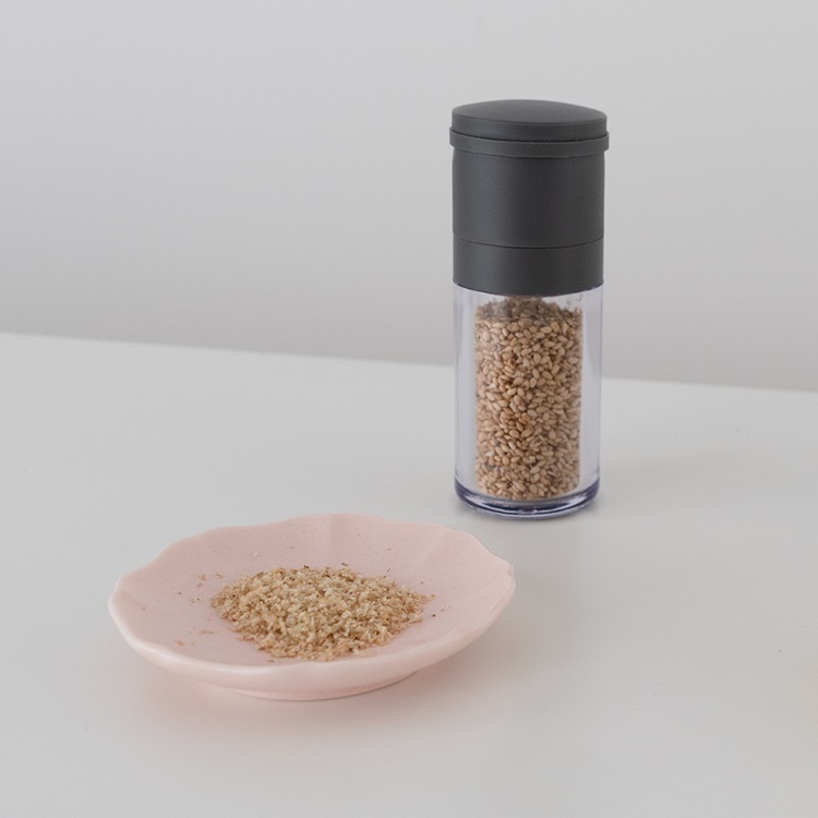 昔ながらのプラスチックのゴマ擂り機は手首が揺れてゴマが飛び散り勝ち。それに比べると上手に擂れるので快適です。