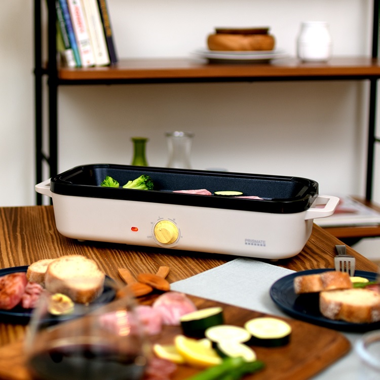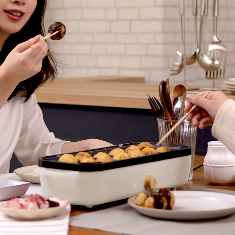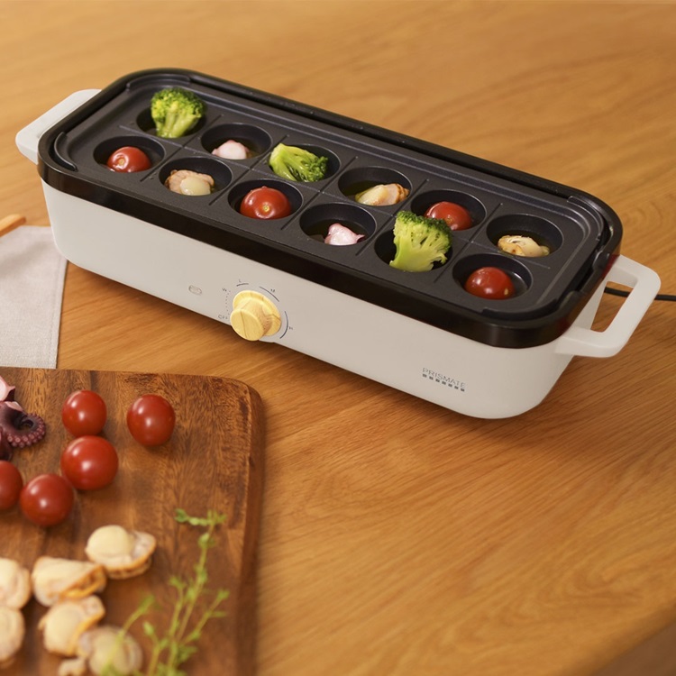 フラット、グリル、たこ焼きの3種プレート付き。毎日の食卓にちょうど良いホットプレート