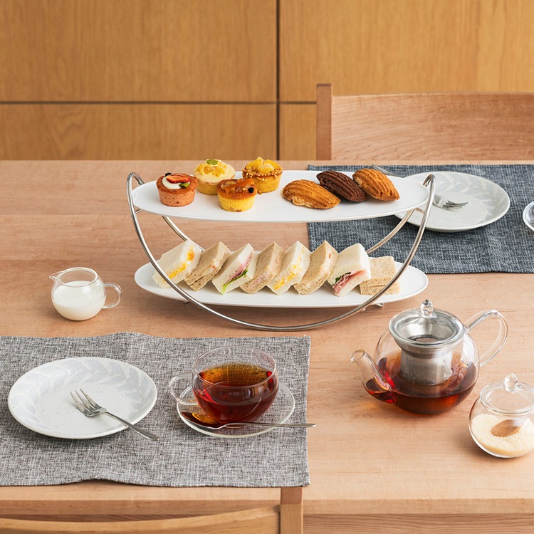 リーフの柄がフチに施されたプレートは、取り皿として使いやすいサイズです。