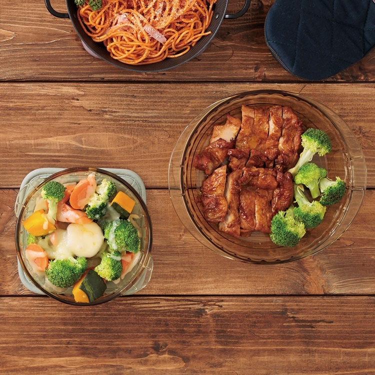 レトロな雰囲気漂う、アンバーカラーのオーブンウェア