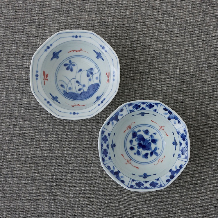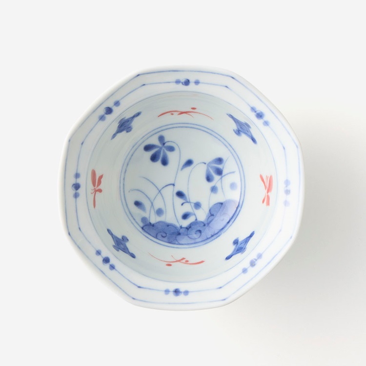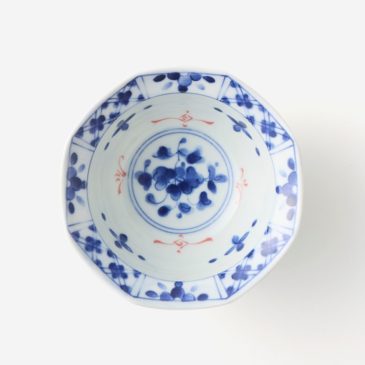 【美濃焼】赤絵八角鉢 12cm