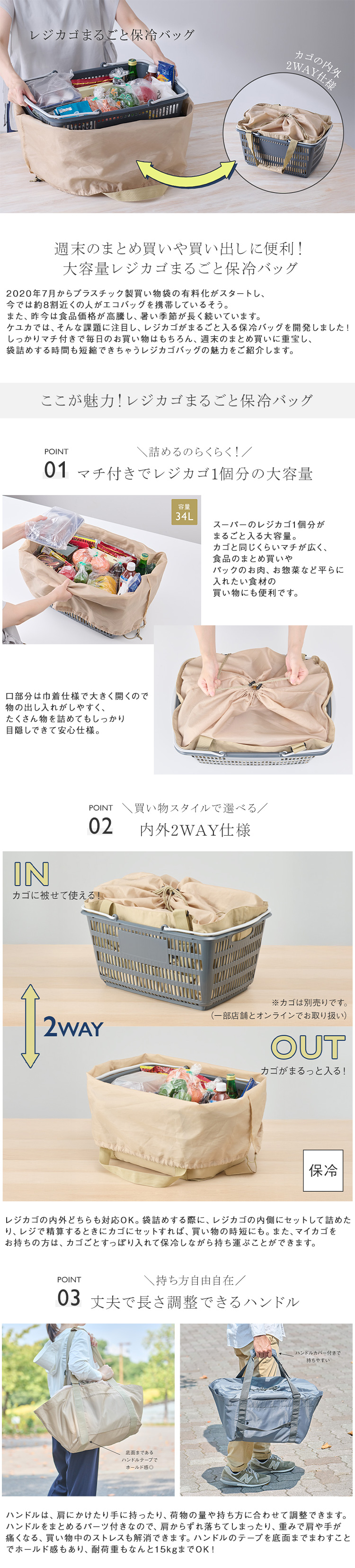 まとめ買いや買い出しに便利な大容量!レジカゴの内外セットできる2WAY仕様