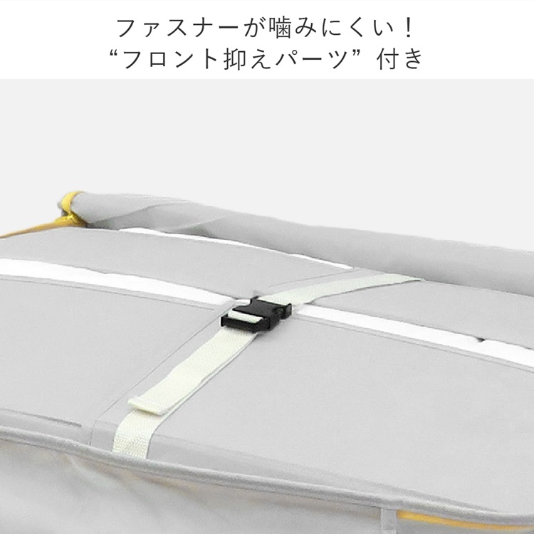 収納時にふとんを巻き込みにくい設計。ファスナーの開閉がスムーズで、ストレスなく片付けられます。