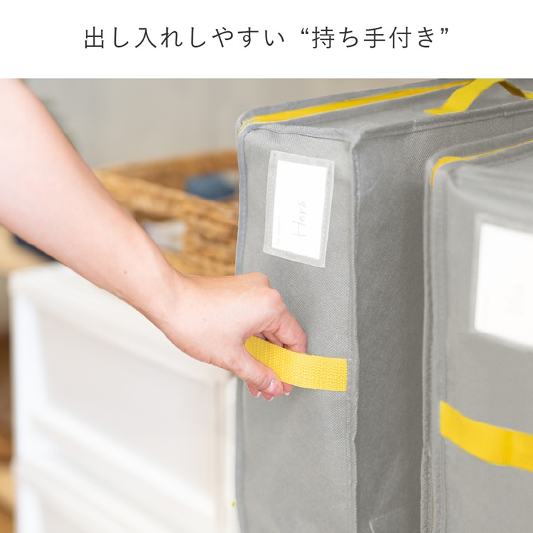 押入れやクローゼットの出し入れに便利な持ち手付き。
