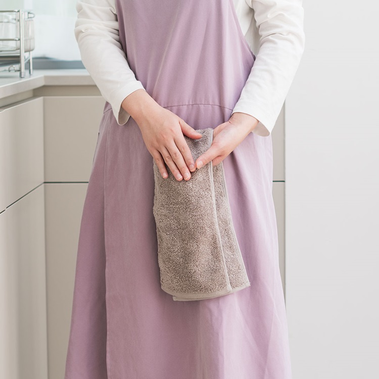コンパクトなタオルでキッチンで使っています。使いやすいです。スナップボタンをつけてずれないようにしてくれると嬉しいな。
