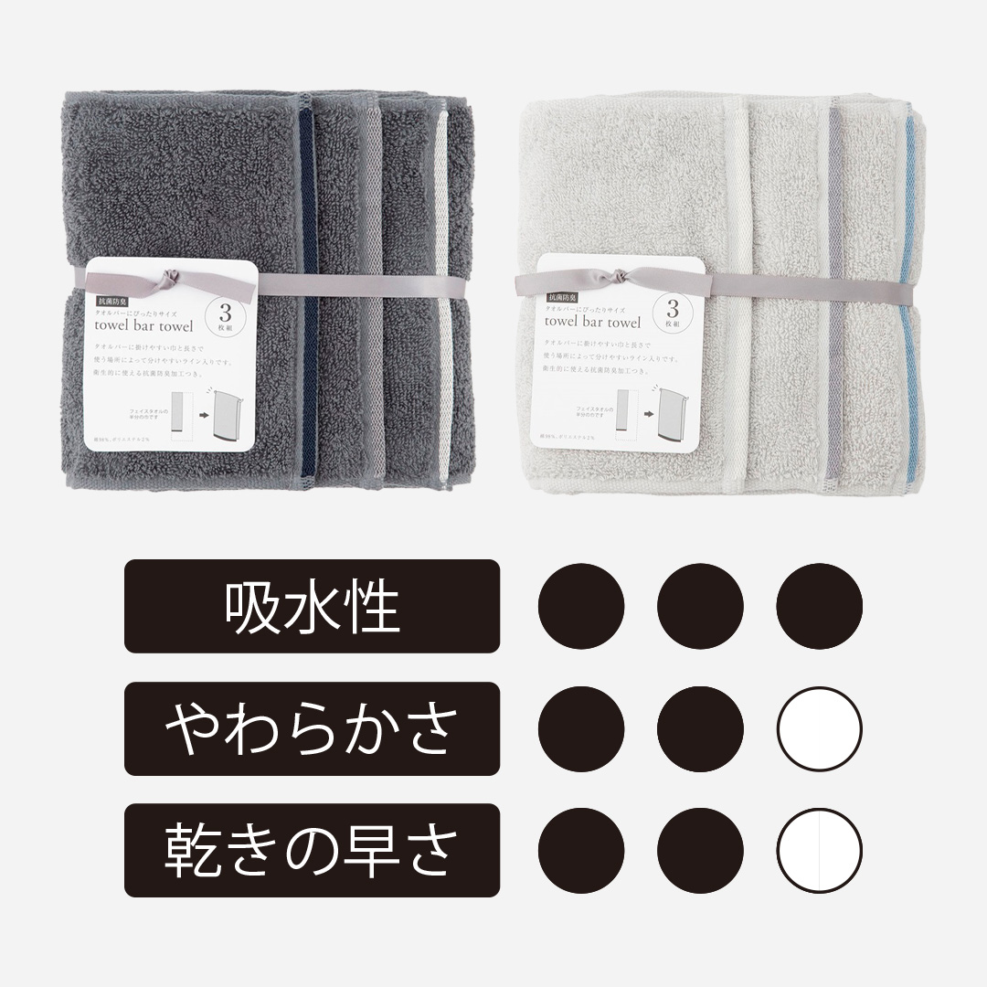 抗菌防臭フェイスタオル 厚手3枚セット ベーシック 34×80cm