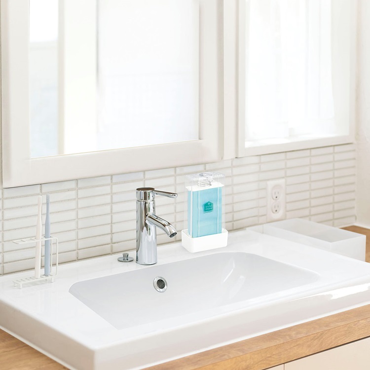 乾きやすい通気口付のフタとともに濡れたまま置けるトレー付。