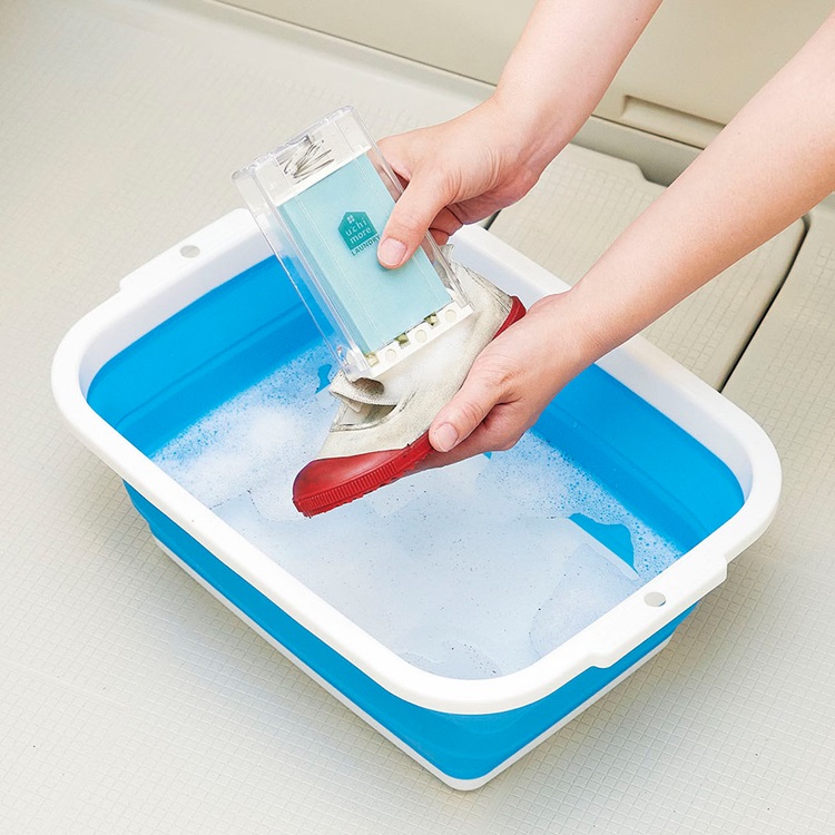 ブラシでしっかり泡立つ!持ちやすく汚れを狙い撃ち!使用後はそのまま置いて収納!