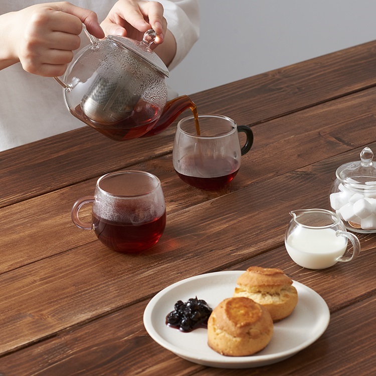 ティーカップとセットで購入。見た目がスタイリッシュで、洗いやすさも抜群です。時間が経っても熱々の温度が保持され、茶渋が染み付いたりもしないので重宝しています。