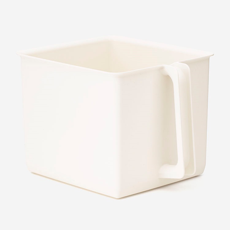 色が柔らかいホワイトで落ち着いて見えます。持ち手もしっかりしていて出し入れにも安心の形状です。他の場所の整頓に再購入をしたいと考えています。
