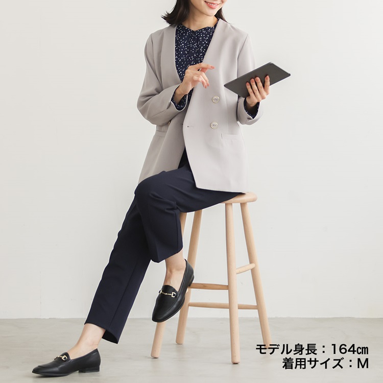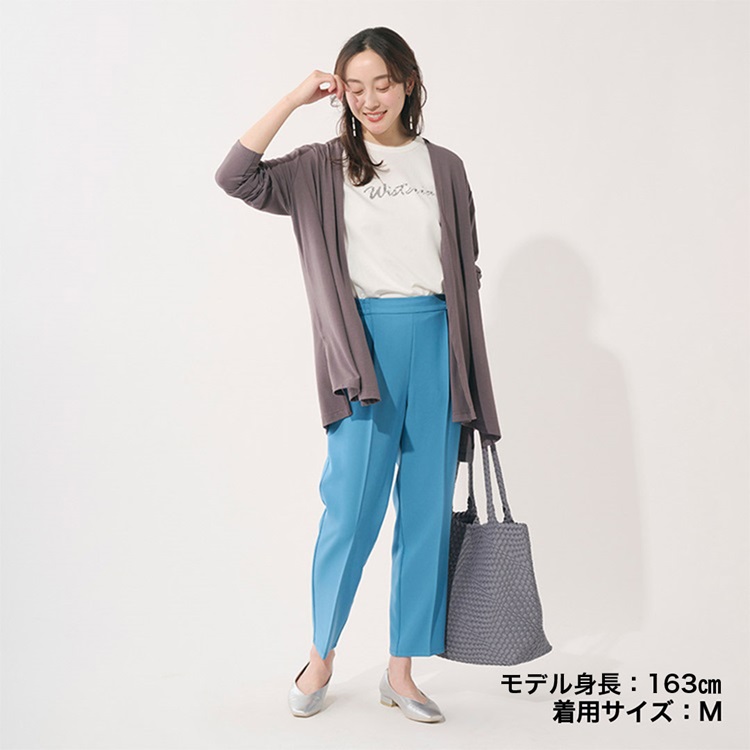 オフィスにもぴったりなキレイ見えするベーシックパンツはストレッチが利いて動きやすいので座っているときもラクチン。