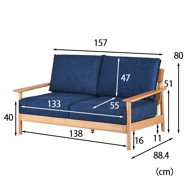 バリタソファ両アーム 2.0人掛け 幅157cm