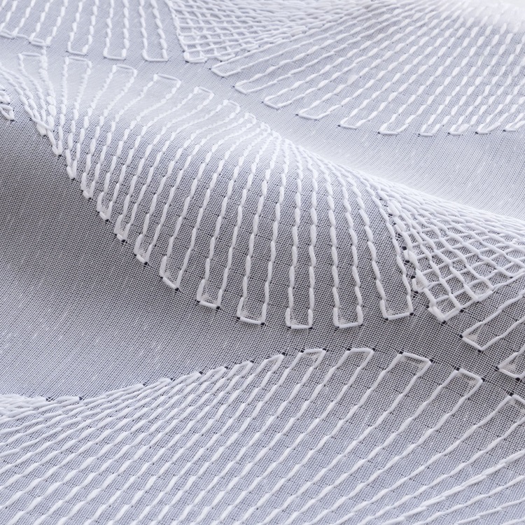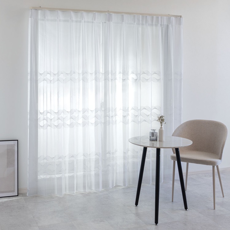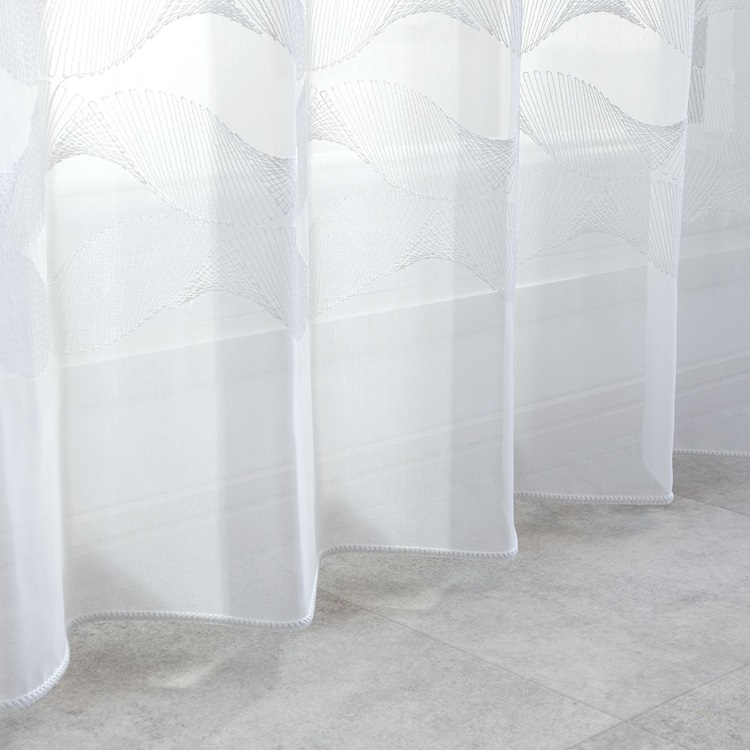 【トルコ製】刺繍クロスウェーブ(ホワイト)|カーテン
