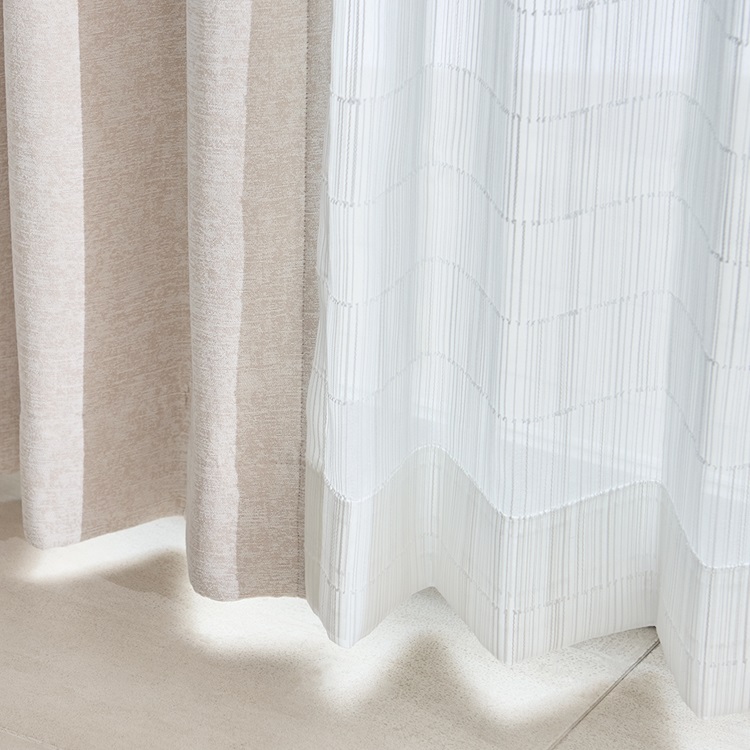 カーテンの広がりを抑えてウェーブを美しく保ちます。洗った後もウェーブが戻りやすく、お手入れがしやすくなる加工です。