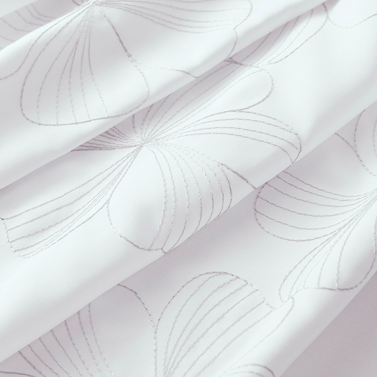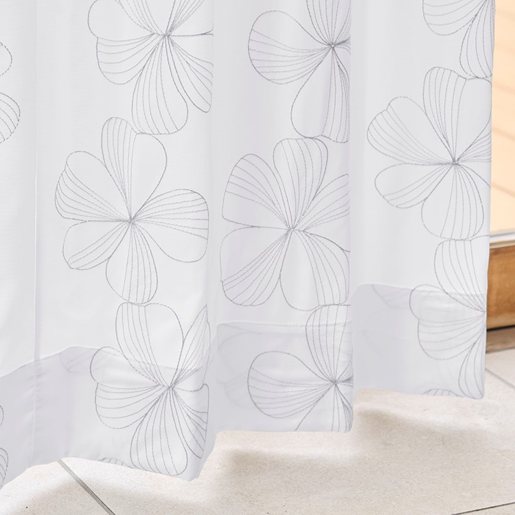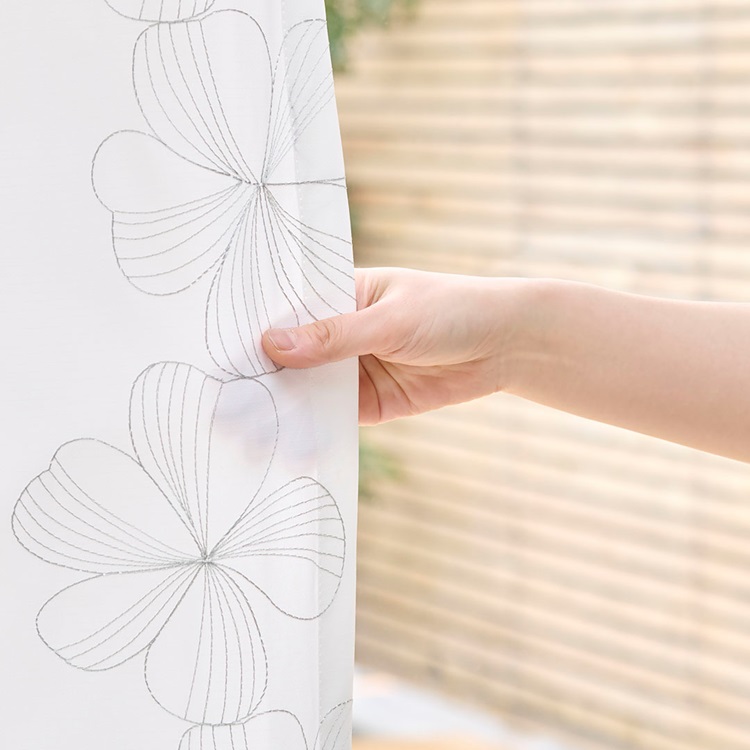UVカット99%×刺繍デリケートフラワー(シルバーグレー)|カーテン