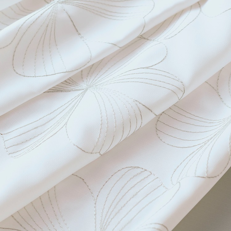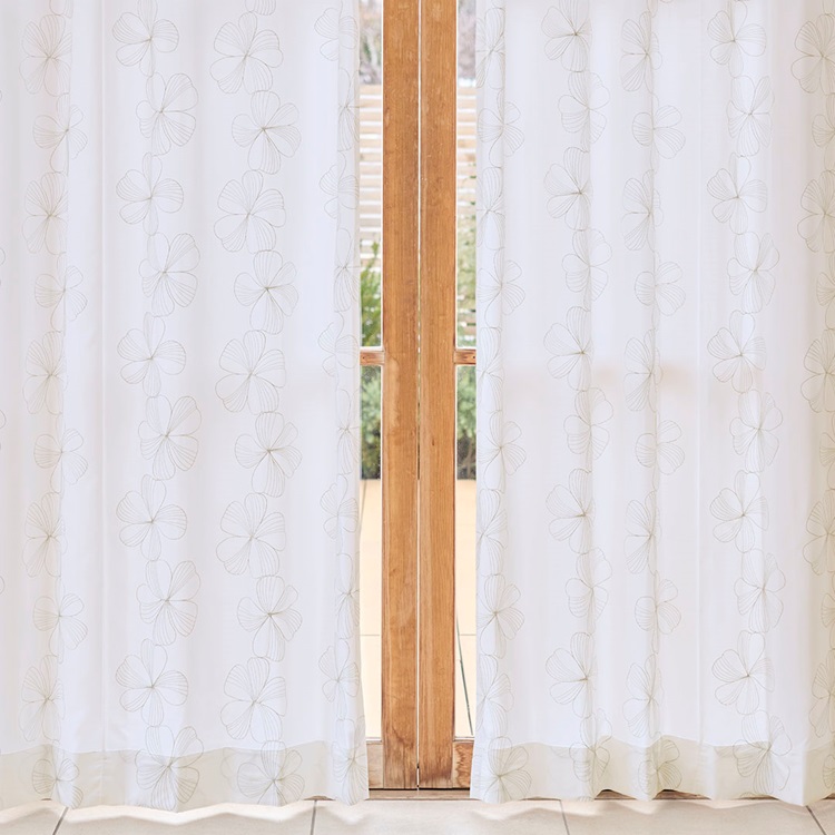 繊細な細いラインで描かれたお花の刺繍が、やさしい雰囲気をつくるレースカーテン。