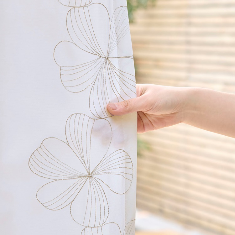 UVカット99%×刺繍デリケートフラワー(ベージュ)|カーテン