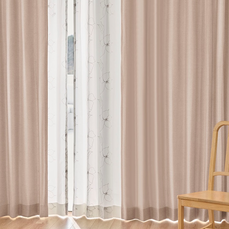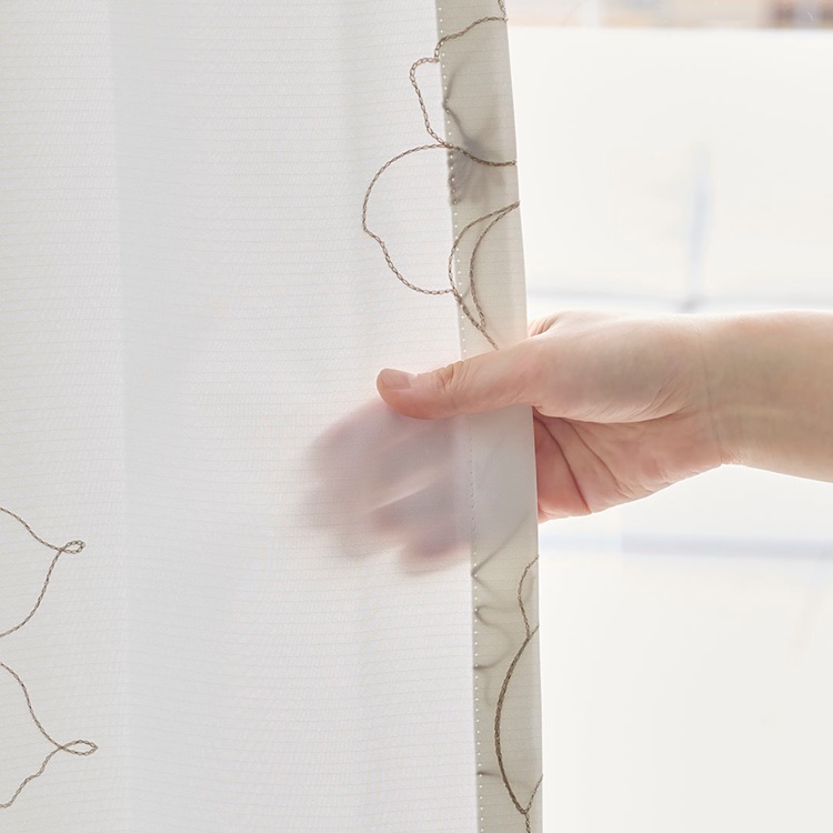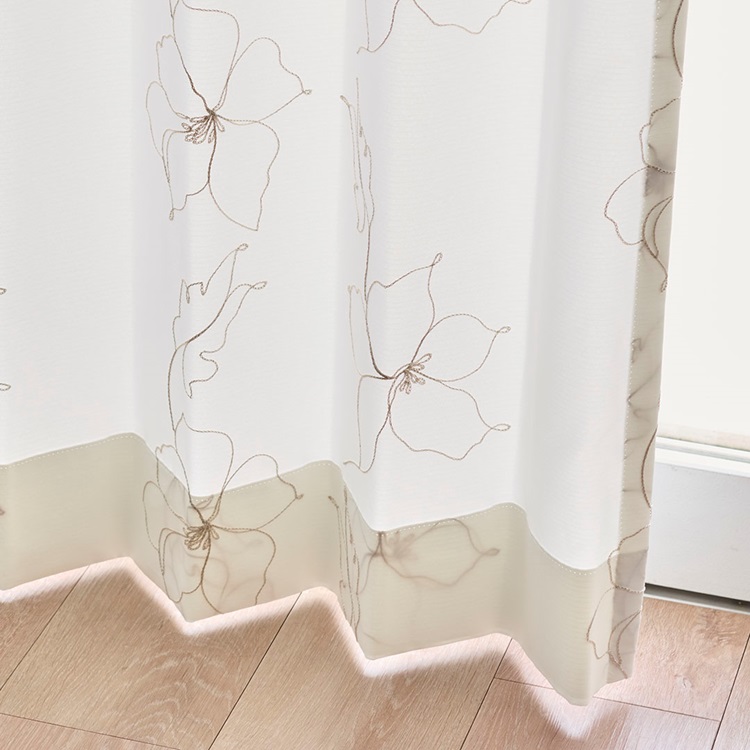 UVカット99%×刺繍ドローイングフラワー(ベージュ)|カーテン