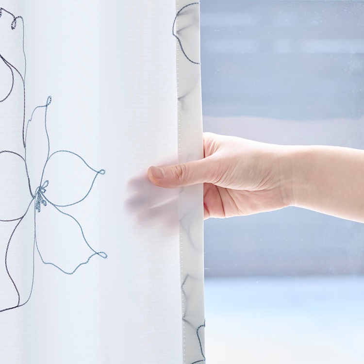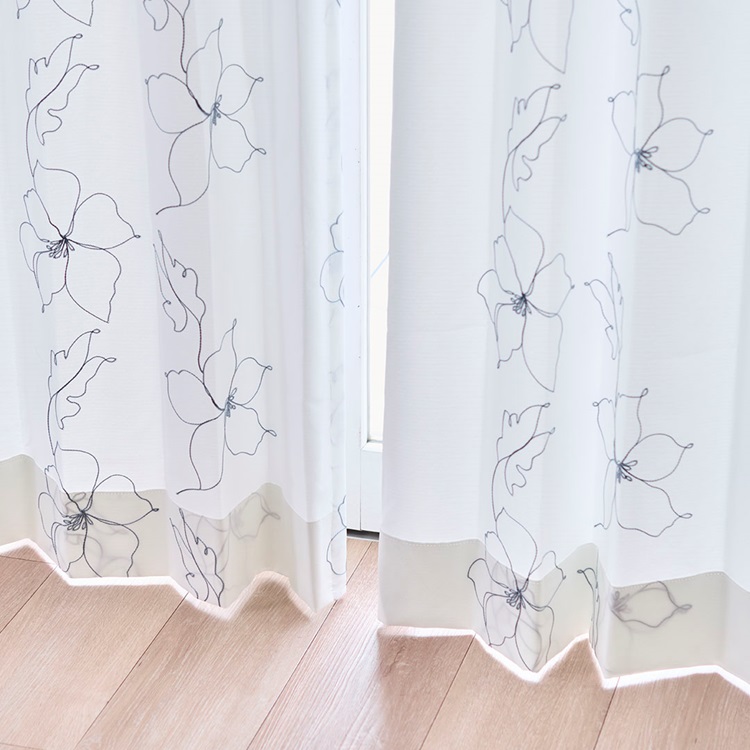 UVカット99%×刺繍ドローイングフラワー(ブルーグレー)|カーテン