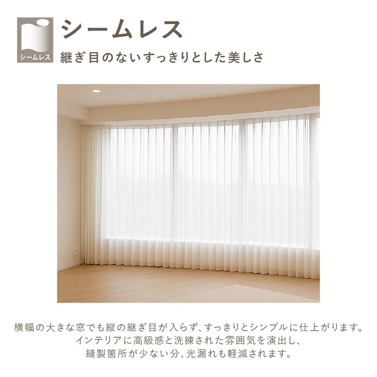 カーテンの広がりを抑えてウェーブを美しく保ちます。洗った後もウェーブが戻りやすく、お手入れがしやすくなる加工です。