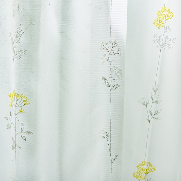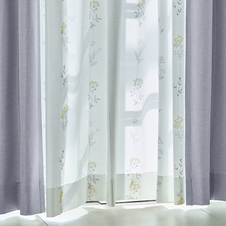 遮熱刺繍草花レース(グレー×イエロー)|カーテン
