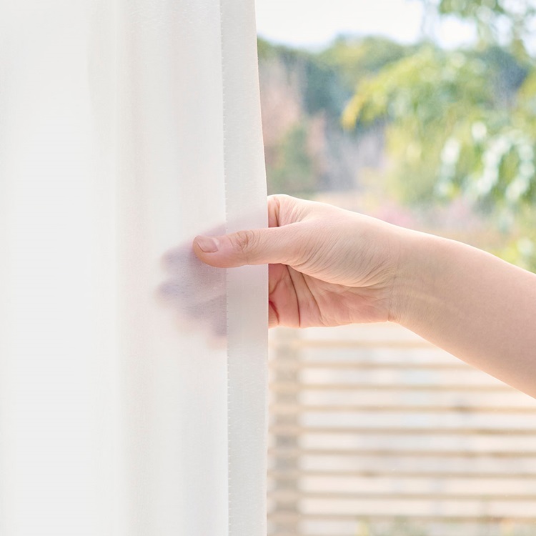 カーテンの広がりを抑えてウェーブを美しく保ちます。洗った後もウェーブが戻りやすく、お手入れがしやすくなる加工です。