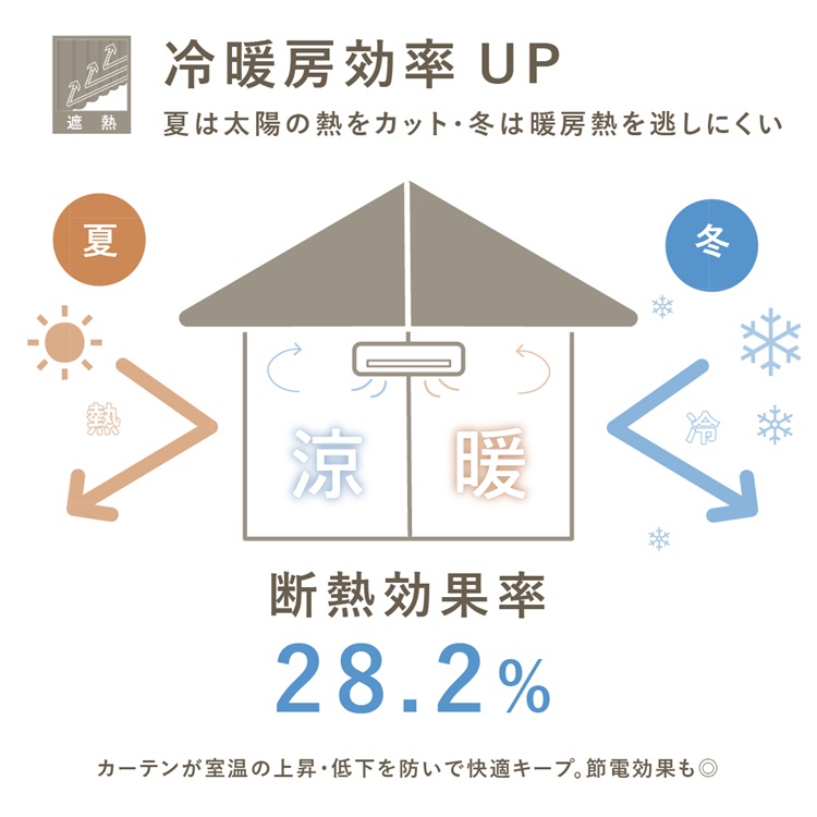 遮光性・断熱効果がアップ。非遮光のドレープカーテンにオプションで付けることができます。