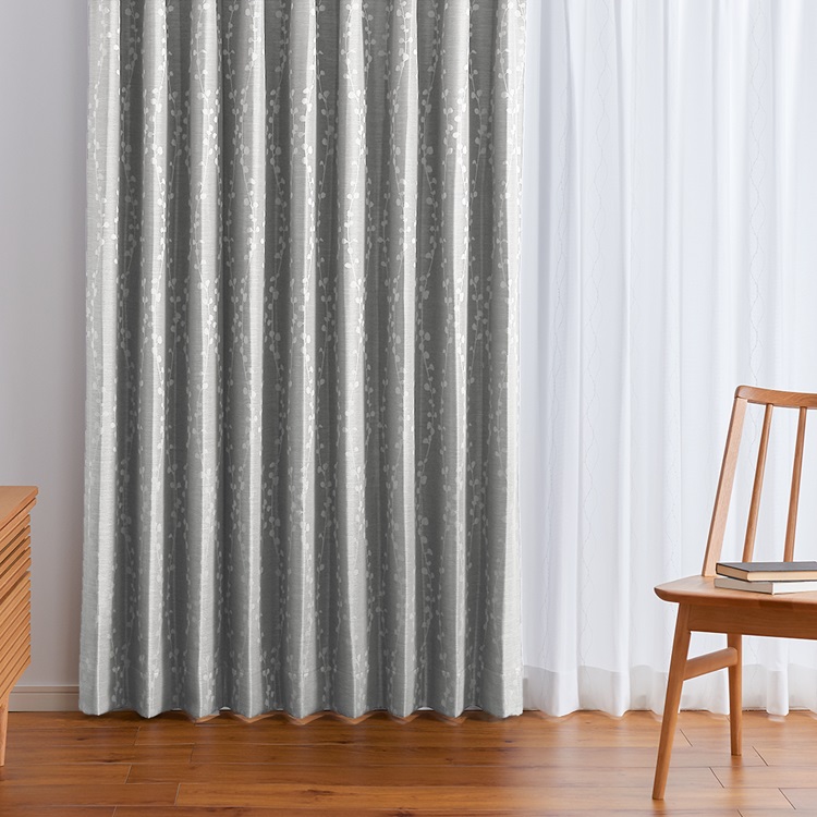 遮光2級|【WEB限定】植物ラインジャカード遮光(グレー)|カーテン