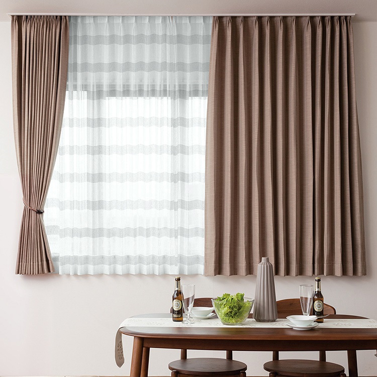 カーテンの広がりを抑えてウェーブを美しく保ちます。洗った後もウェーブが戻りやすく、お手入れがしやすくなる加工です。