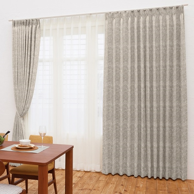 フラットカーテンの場合:約1.2倍のゆとりを上乗せした仕上がり 2つ山1.5倍ヒダカーテン・3つ山2倍ヒダカーテンの場合:約3~5%の ゆとりを上乗せした仕上がり ※サイズ入力時は、測ったレールの実寸を入れてください。