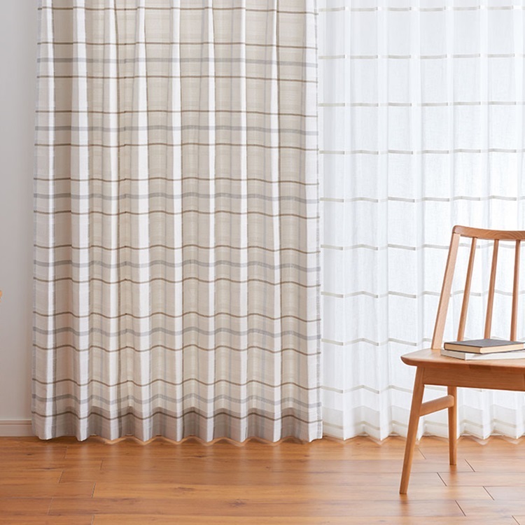 部屋側のレールにドレープカーテン、窓側のレールにレースカーテンを吊る場合、 ドレープの裾からレースが見えてしまわないように、レースはドレープの-1cmがおすすめです。 ※サイズ入力時は、測ったレールの実寸を入れてください。