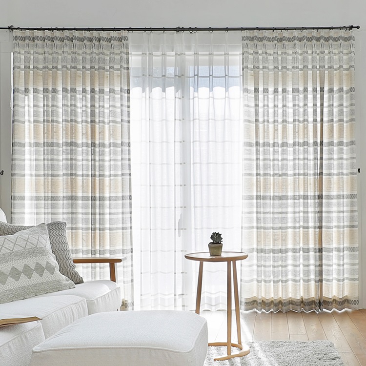 【WEB限定】ナチュラルボーダーレース(ベージュ)|カーテン