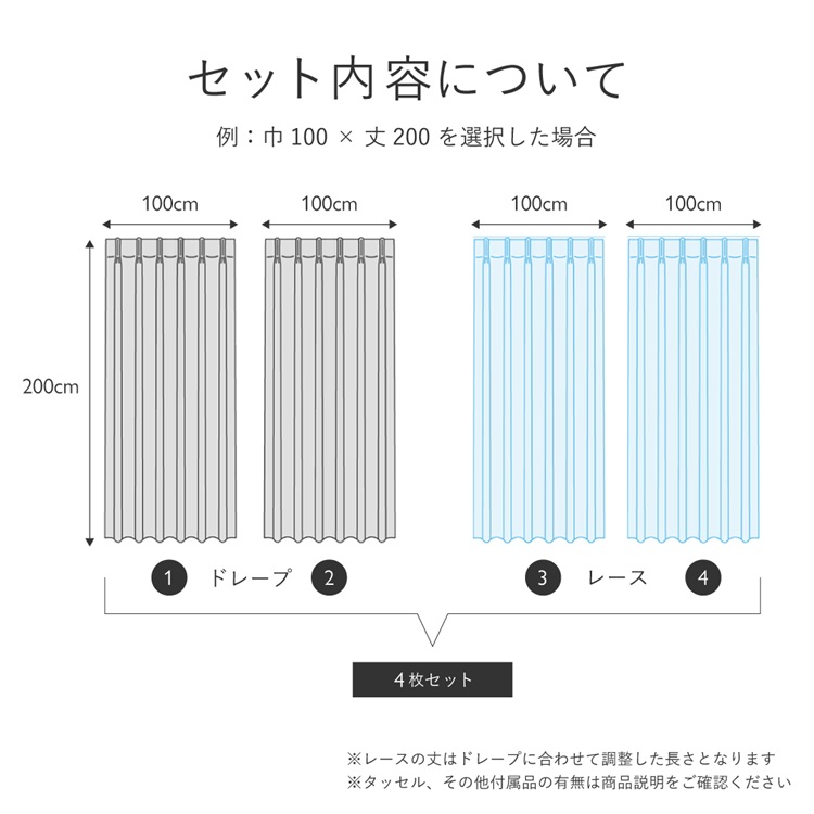 ドレープとレースお得な4枚セット。遮光1級 ウォッシャブル 遮熱