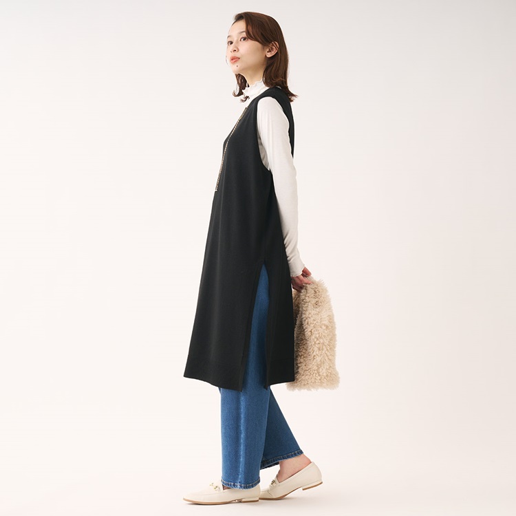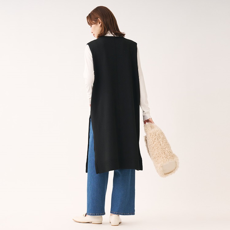 どんなインナーとも好相性で、コーデの幅を広げてくれるロングニットベスト