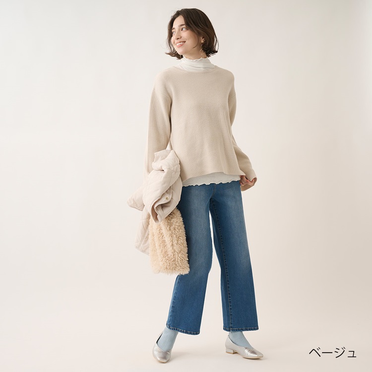 ハイネックリブニットトップス