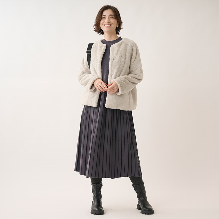 【すごナノ撥水】ノーカラーギャザーブルゾン