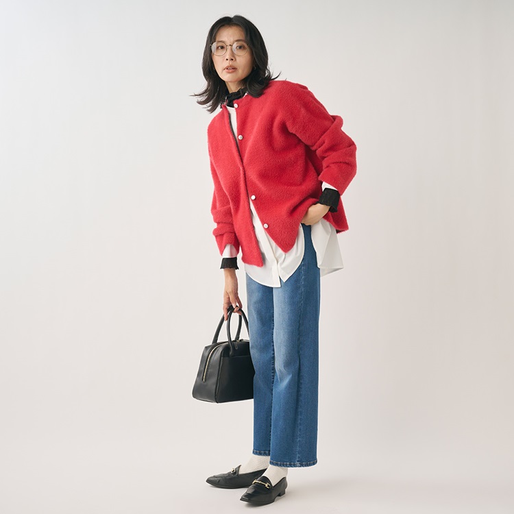 カーディガン、ライトアウターにも使える配色が映える旬顔カーディガン