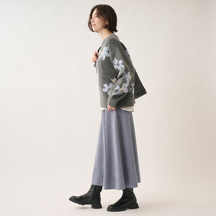 配色の花柄でコーデの主役になる柔らかニットトップス