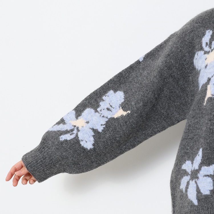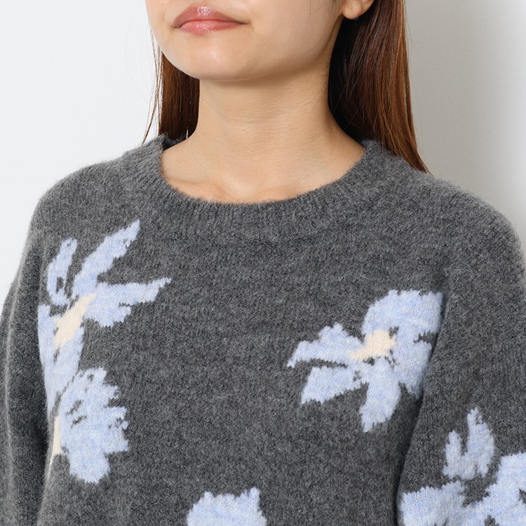 フラワージャカードニットトップス