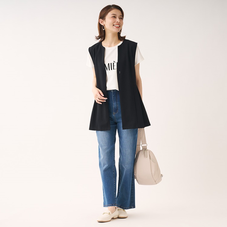 ヒップが隠れる丈感で、ウエスト周りをカバーします。