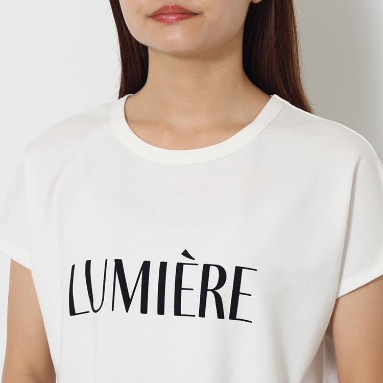 ・シンプルな大人っぽいロゴをフロッキープリントにし秋らしさを演出