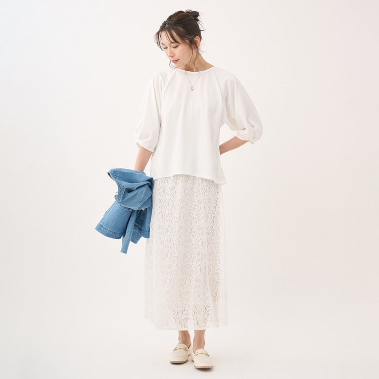 ヒップが隠れる丈感とスリーブのデザインでおしゃれしながら体型カバーができるアイテムです!
