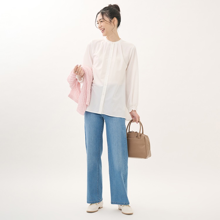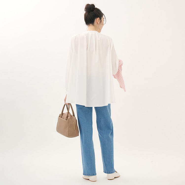 防汚撥水機能付き!バンドカラーで着回し自在のフレアシャツ