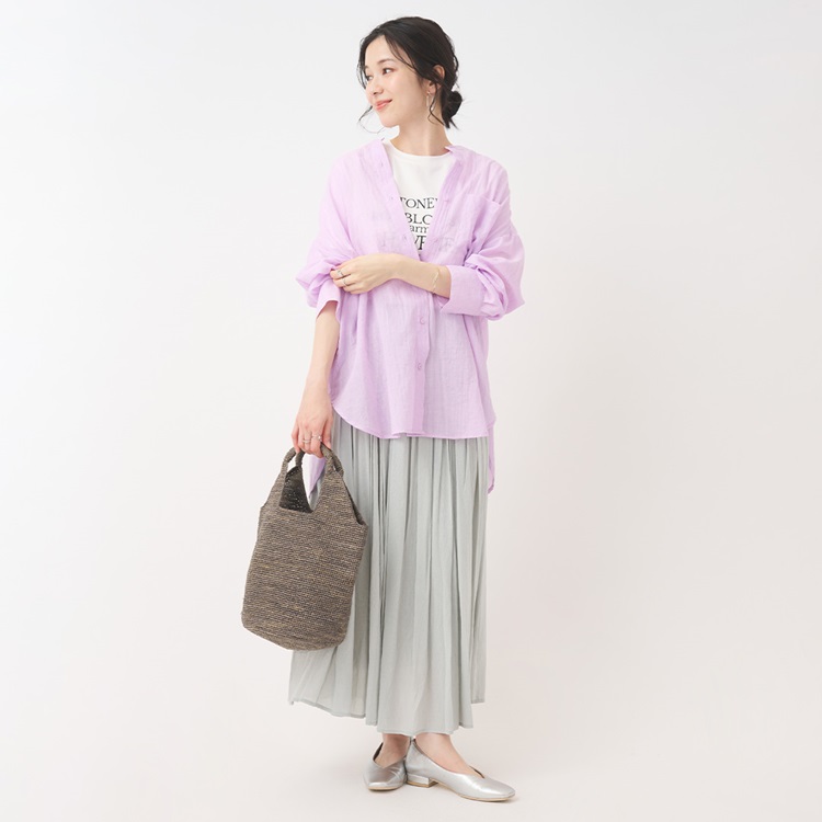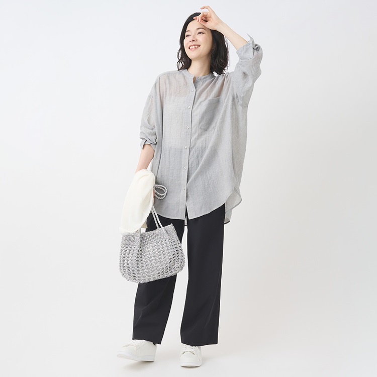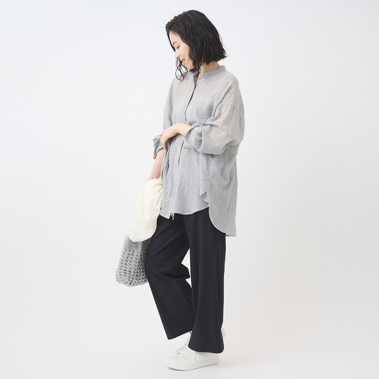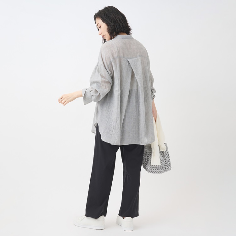 ナチュラルなニュアンスを楽しめるチュニック丈シャツ