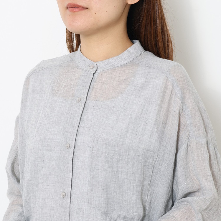 リネン混コクーン7分袖シャツ
