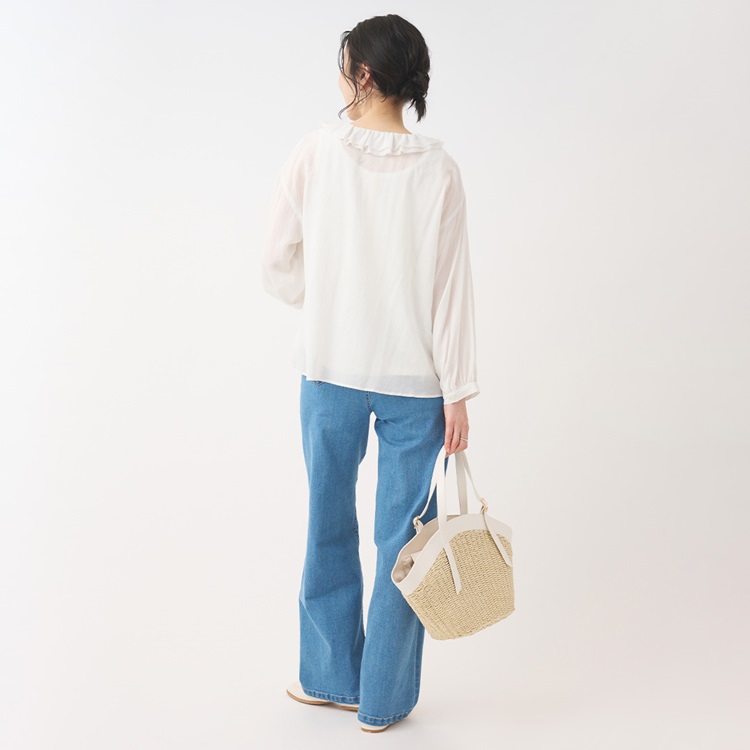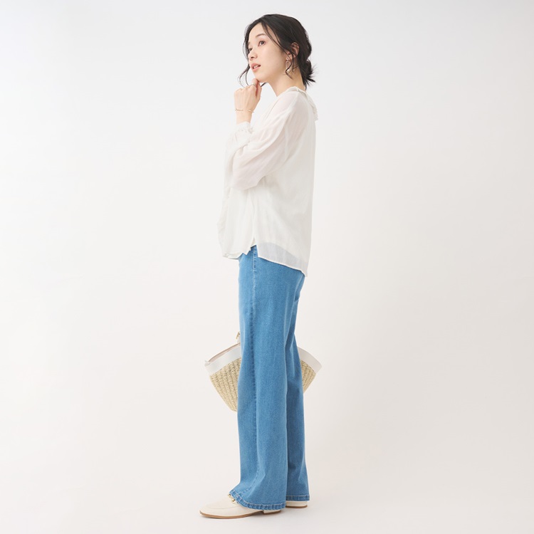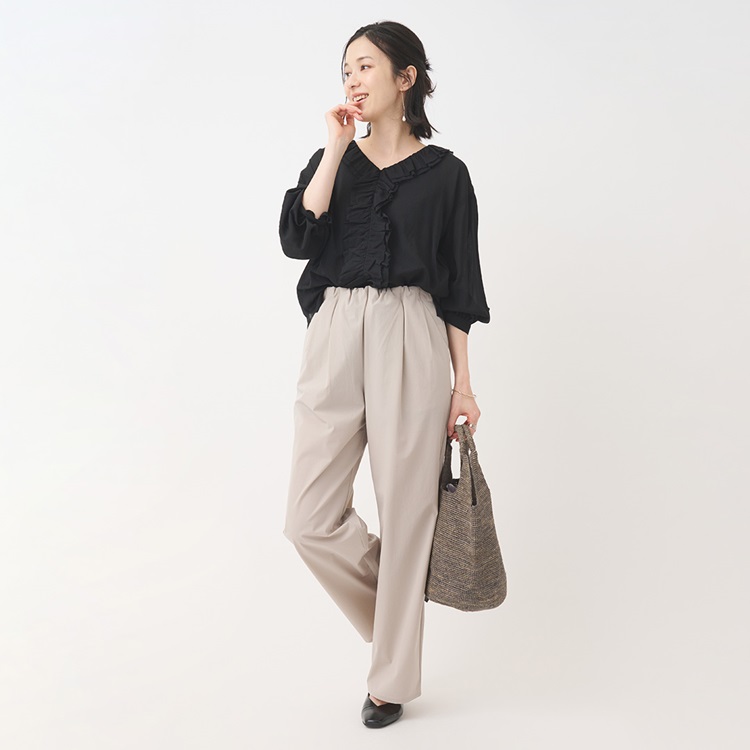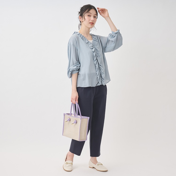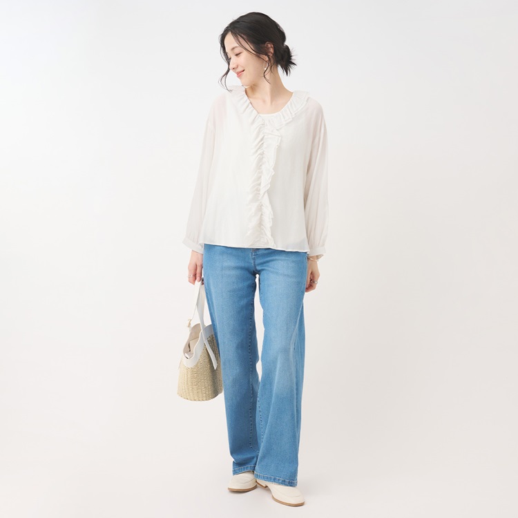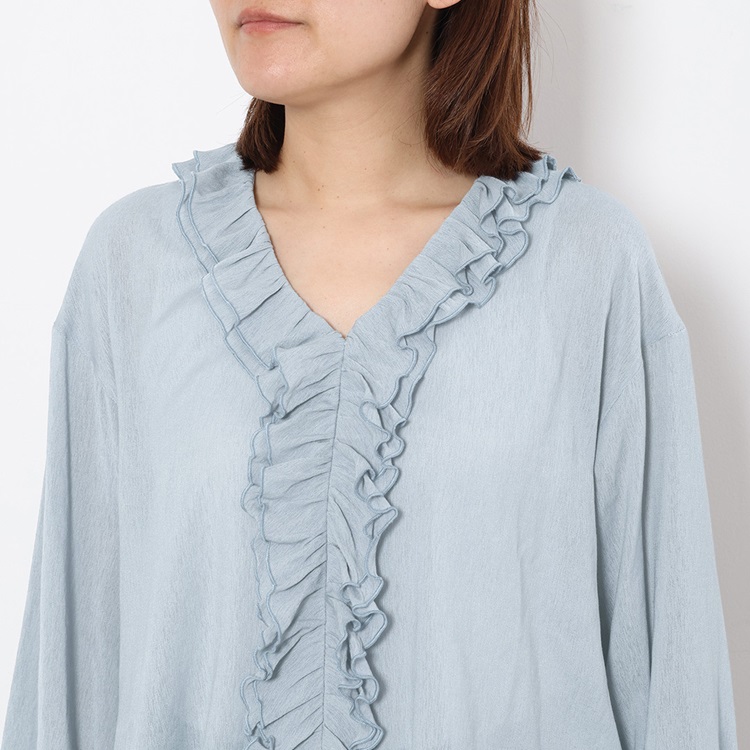 たっぷり入ったフロントのフリルが華やかなブラウス