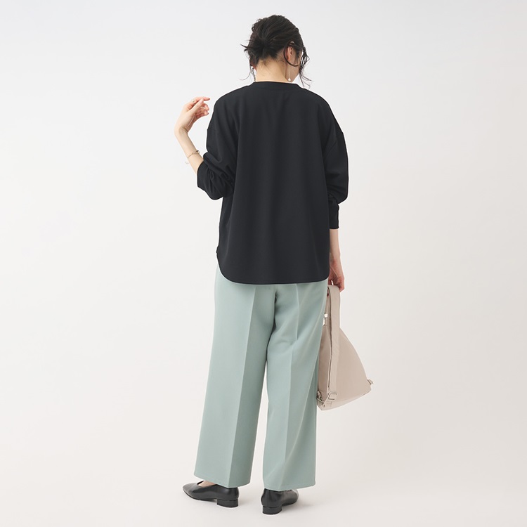 伸びの良いジョーゼットポンチ素材で薄手の長袖インナーを合わせてももたつきません◎