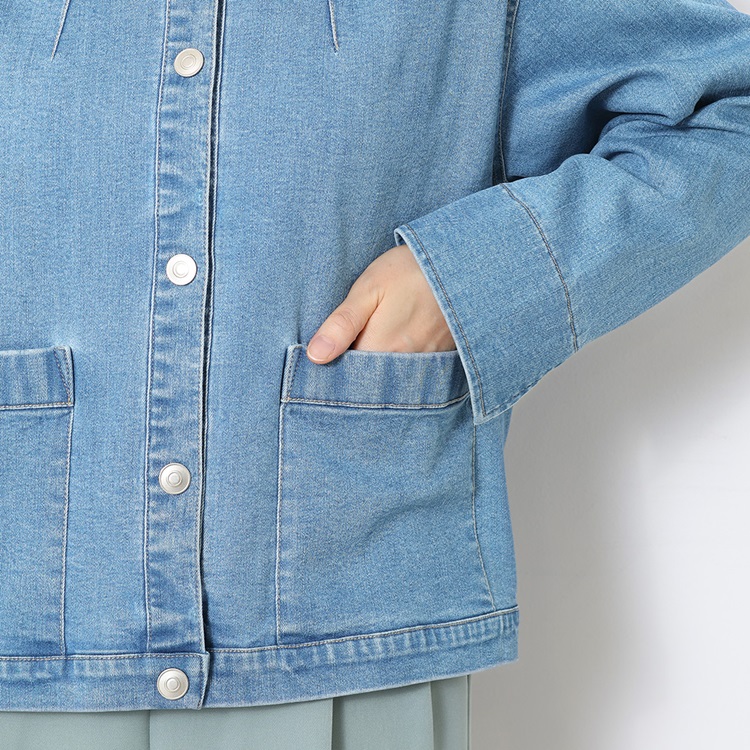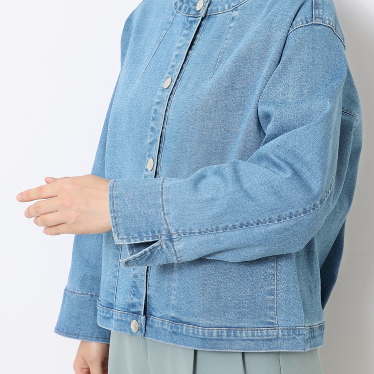 【サイズ展開あり】ノーカラーで女性らしいシルエットのデニムジャケット